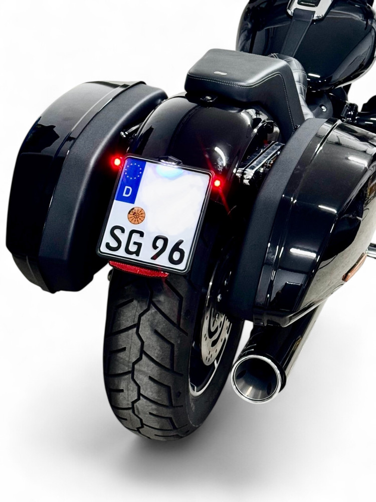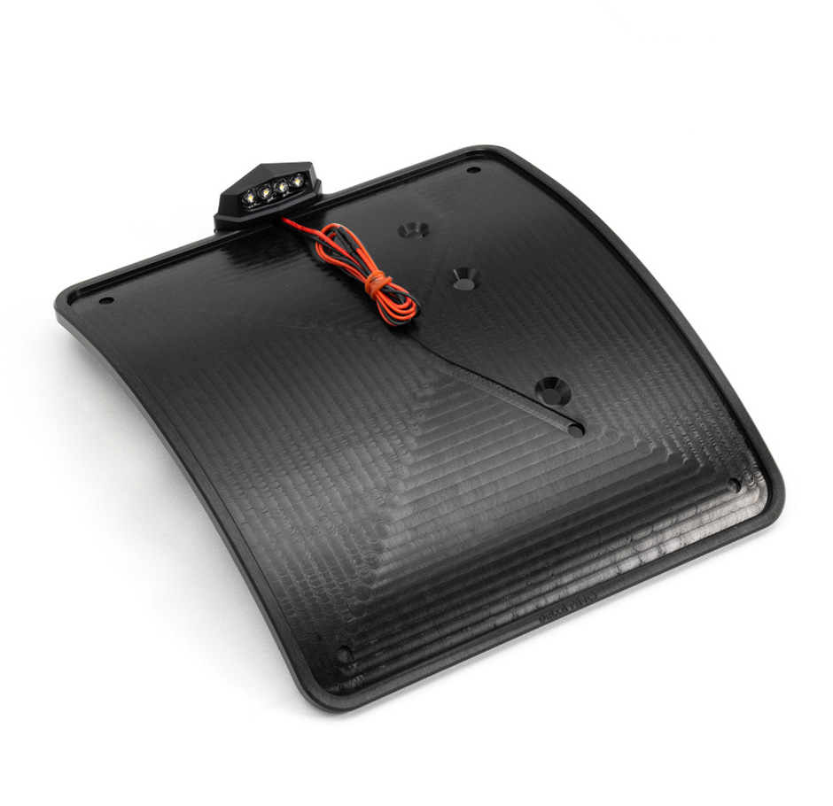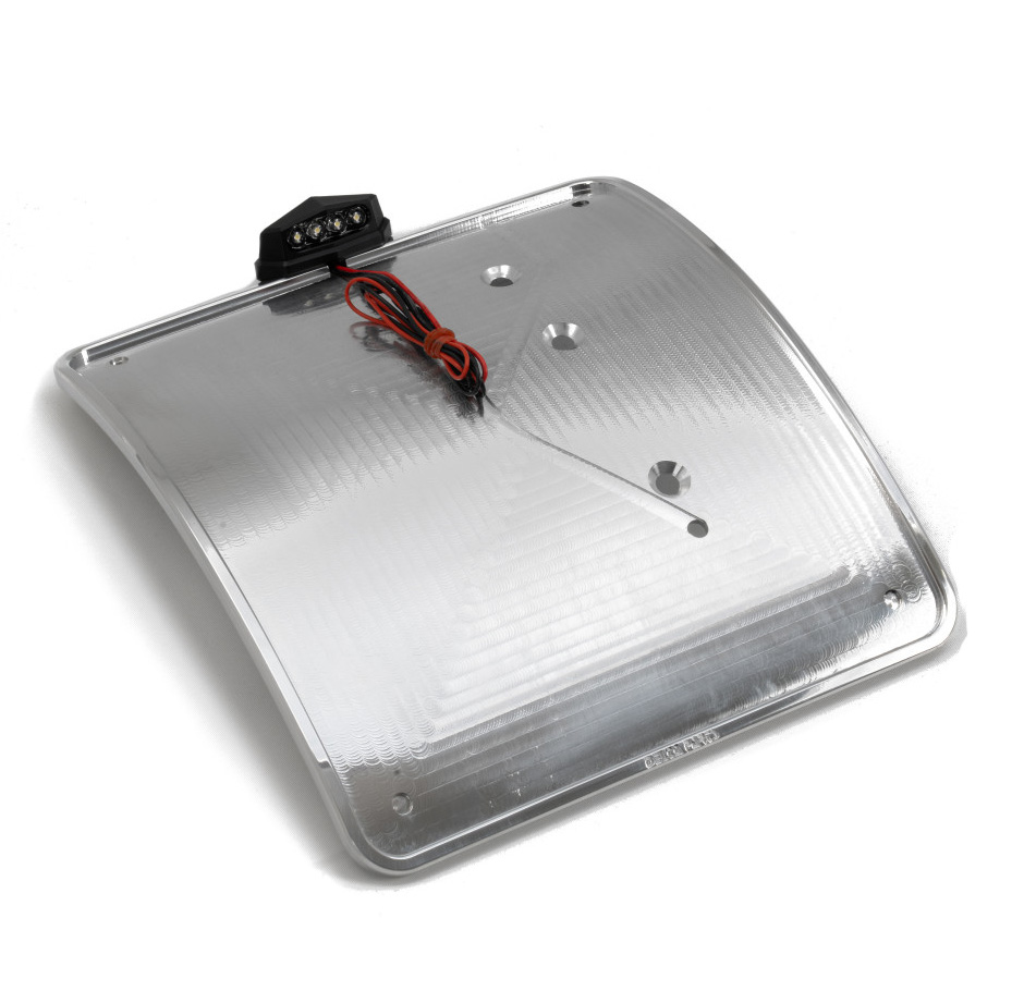 Kennzeichenplatte „Breeze“, aufwendig aus 6mm Aluminium CNC-gefräst, inkl. LED-Kennzeichenbeleuchtung (mit verdeckter Kabelführung), passend z.B. zur Heckmontage an Harley-Davidson® Road Glide® oder Street Glide®.
