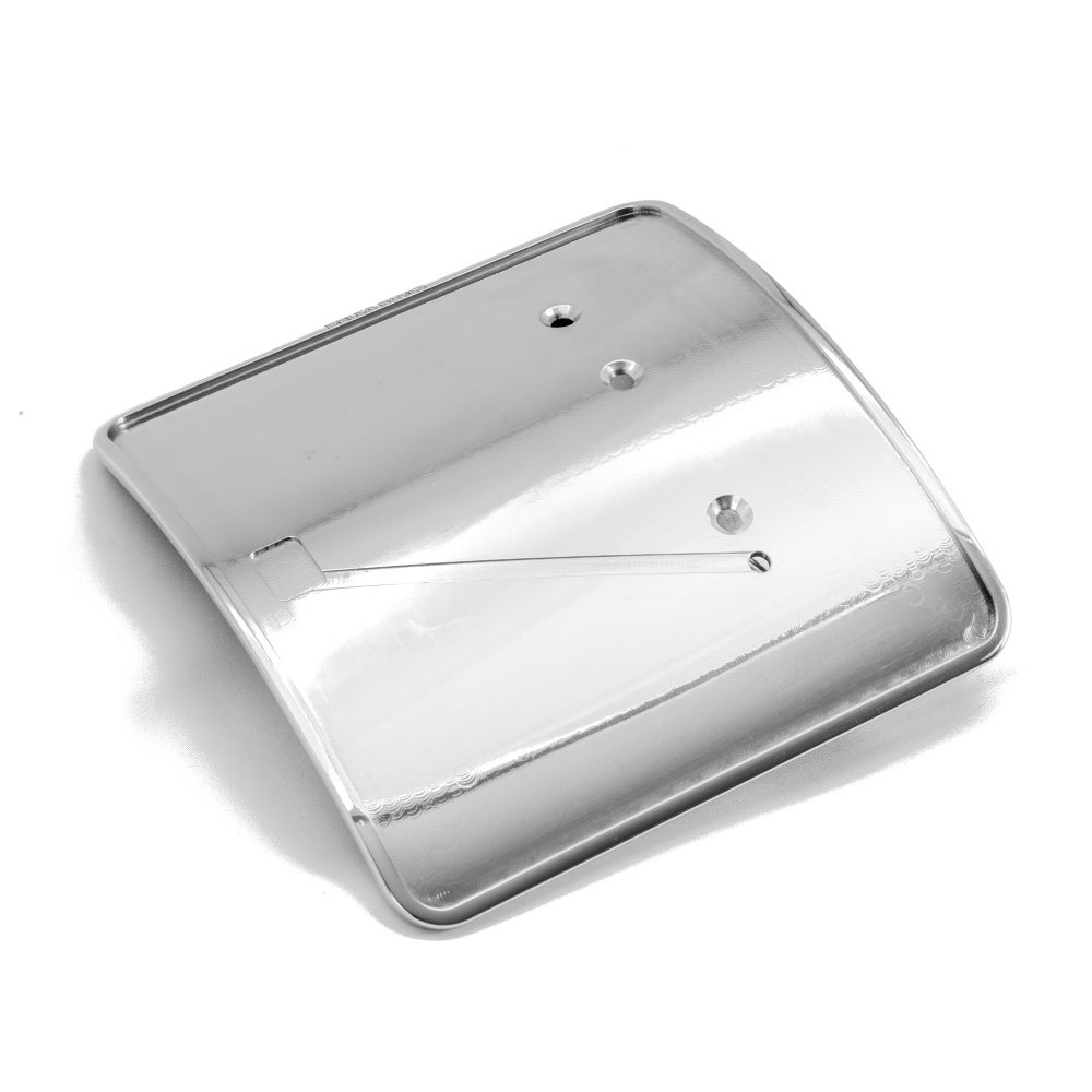 Aufwendig CNC-gefräst, schwarz eloxiert oder hochglanzpoliert ist es das Detail an jedem Fahrzeug. Gibt dem Kennzeichen Halt und verhindert das Einreißen des Kennzeichens z.B. durch Vibrationen.
