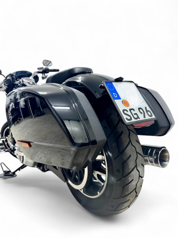 Kennzeichenplatte „Breeze ghost“, aufwendig aus 6mm Aluminium CNC-gefräst, ohne Kennzeichenbeleuchtung, z.B in Verwendung von selbstleuchtenden Kennzeichen (mit verdeckter Kabelführung) oder in Verbindung mit dem originalen Rücklicht. Passend für alle Harley-Davidson®-Modelle mit dem originalen Halter auf dem Heckfender sowie zur Heckmontage an Harley-Davidson® Road Glide® oder Street Glide®.